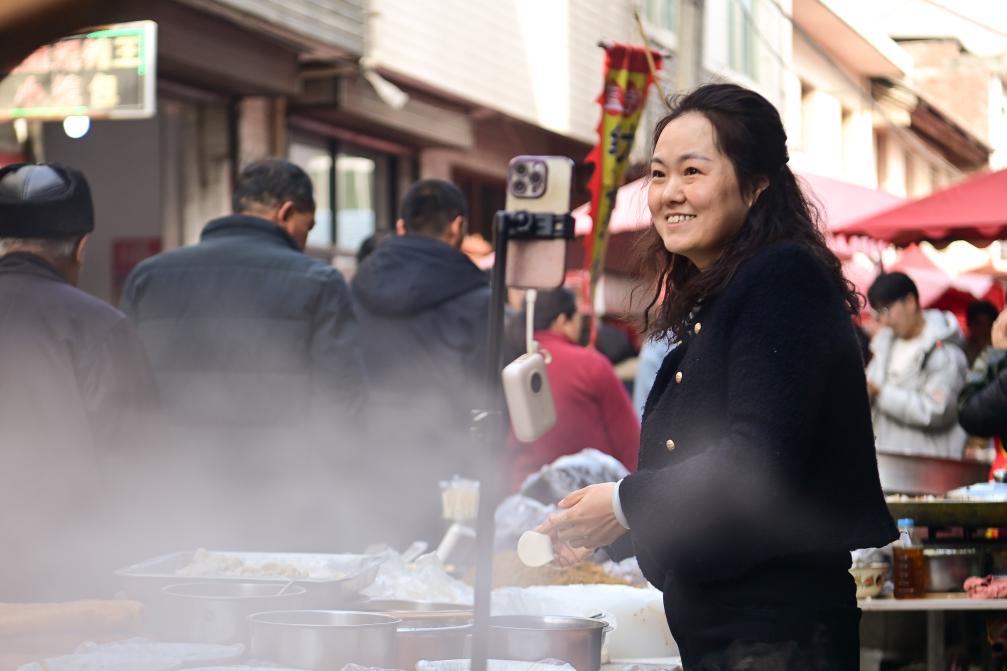 网络传播让焦岱大集的美名传遍四方。走在集市,随处可以看到摊主们对着手机介绍美食,还能看到来赶集的主播举着手机穿梭在人流中。